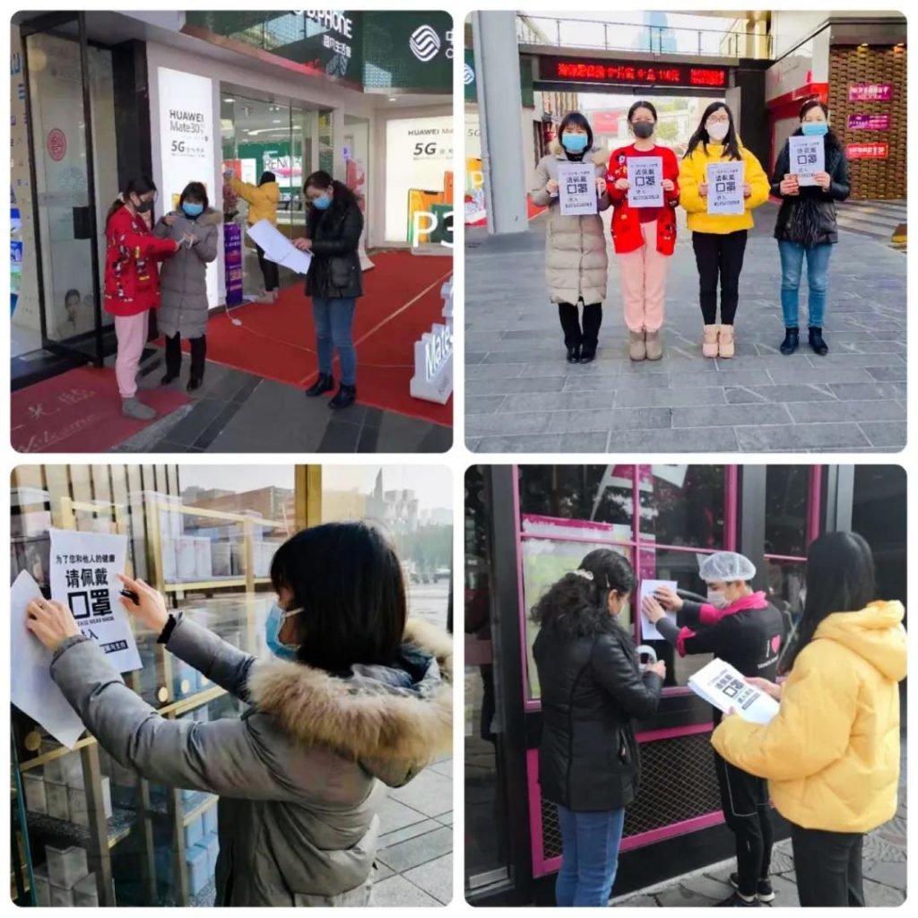 在廣場(chǎng)公司各門店:和義大道、國(guó)購(gòu)、酷購(gòu)、月湖盛園,很多女性職員為防疫與復(fù)工付出了辛勤的汗水,她們耐心地與商戶溝通,發(fā)放宣傳資料、解答相關(guān)問題等等,確保復(fù)工工作的有序開展。